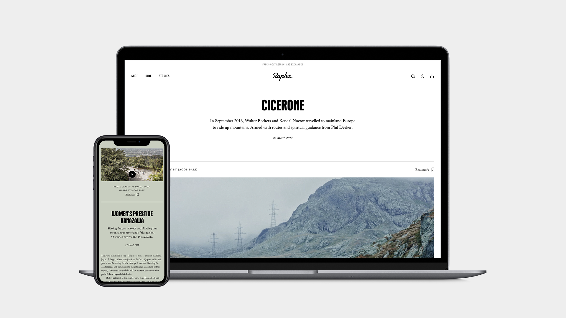 We set out to design an experience on par with the exceptional level of design and quality already embodied by Rapha's brand and cycling products.